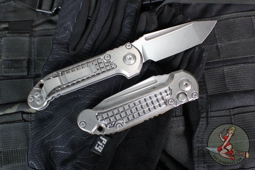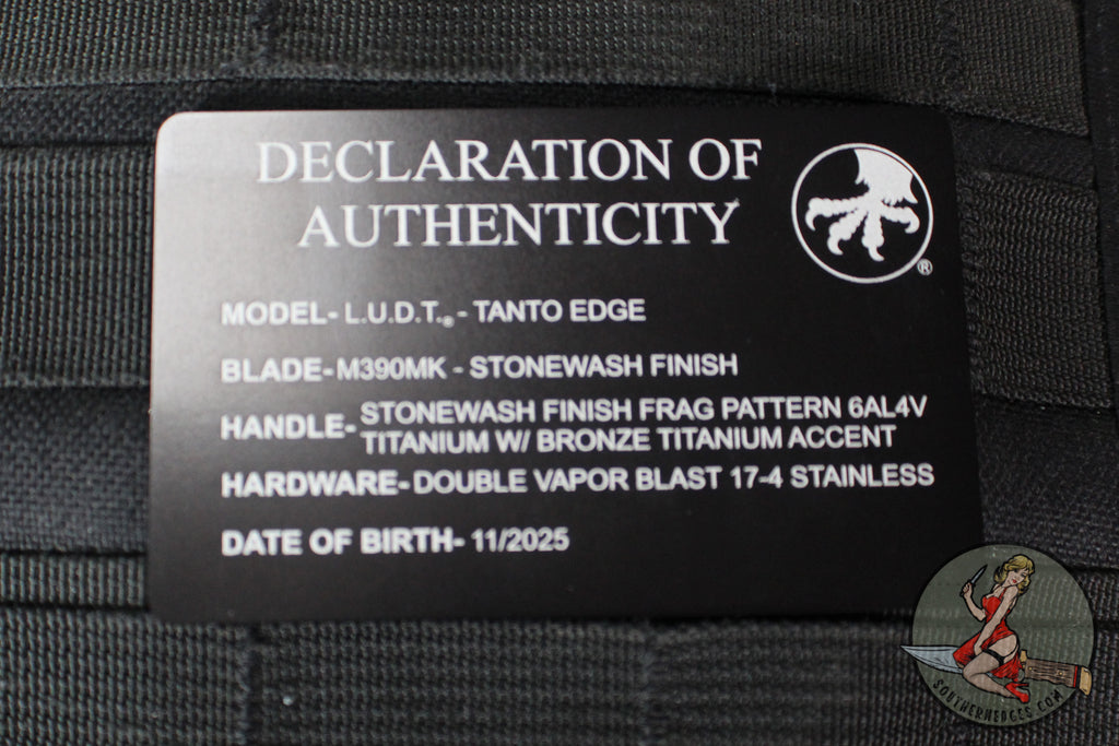Microtech LUDT OTS Knife- Marfione Select- Frag Pattern Stonewash Finished Titanium Handle- Stonewash Blade 1136-10 FRMS1