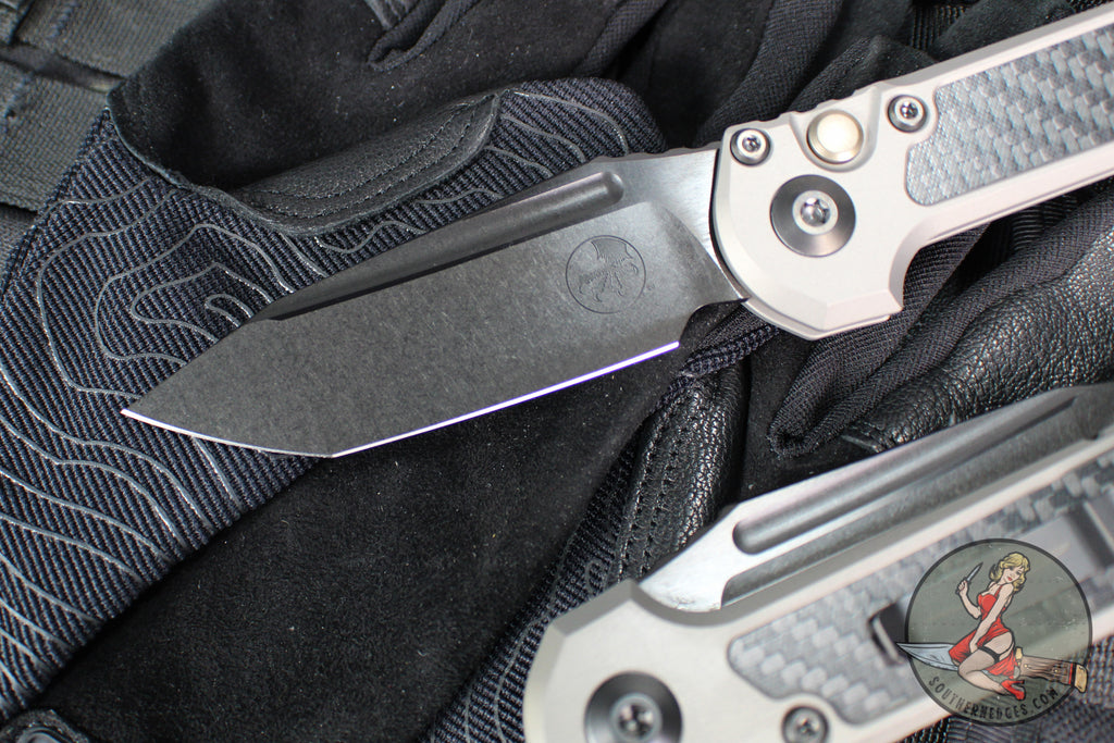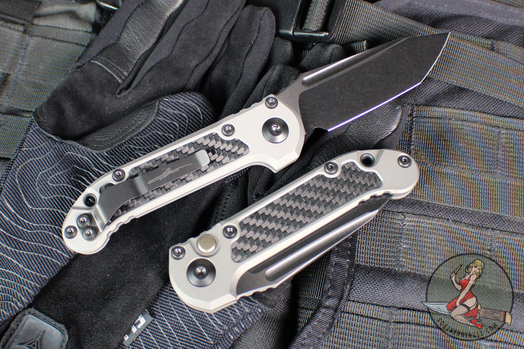 Microtech LUDT OTS Knife- Tanto Edge- Natural Clear Finished Handle- Carbon Fiber Inlay- Black DLC Finished Blade 1136-1 DLCTNCCFIS