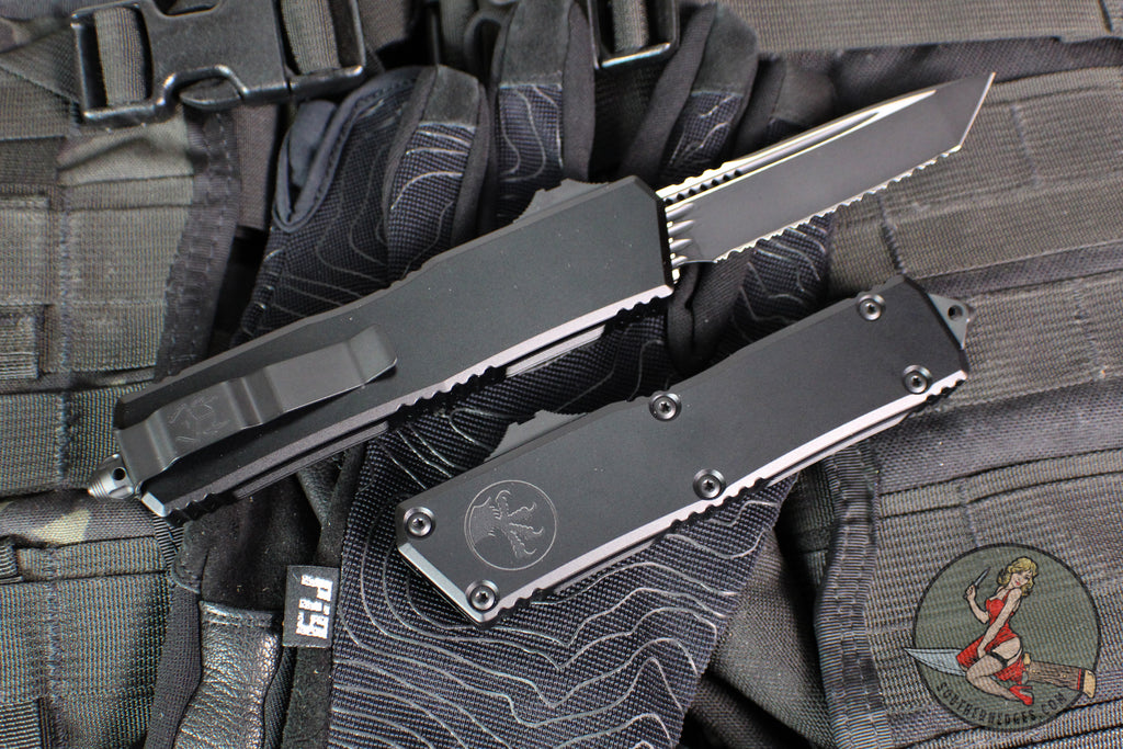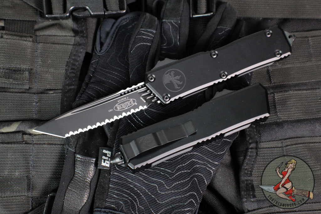 Microtech Scarab II- Gen III- Executive- Tanto Edge- Tactical- Black Handle- Black Full Serrated Edge Blade 1177-3 T
