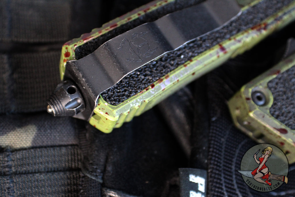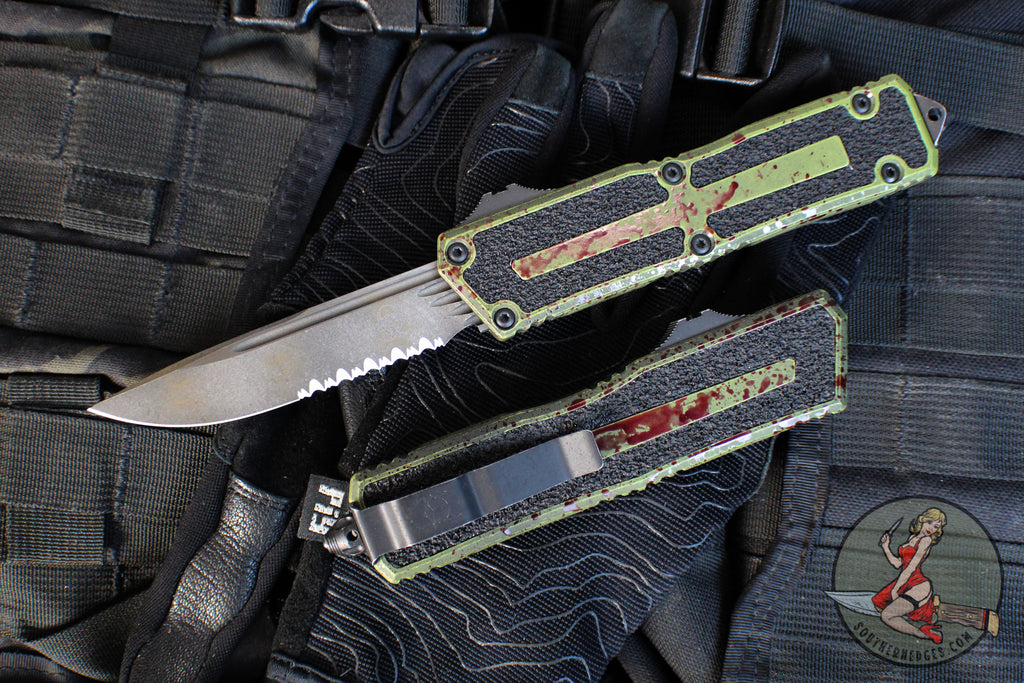 Microtech Scarab II- Single Edge- Outbreak Finished Handle- Outbreak Black Part Serrated Edge Blade 1278-2 OBS