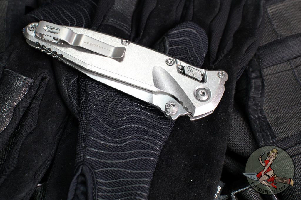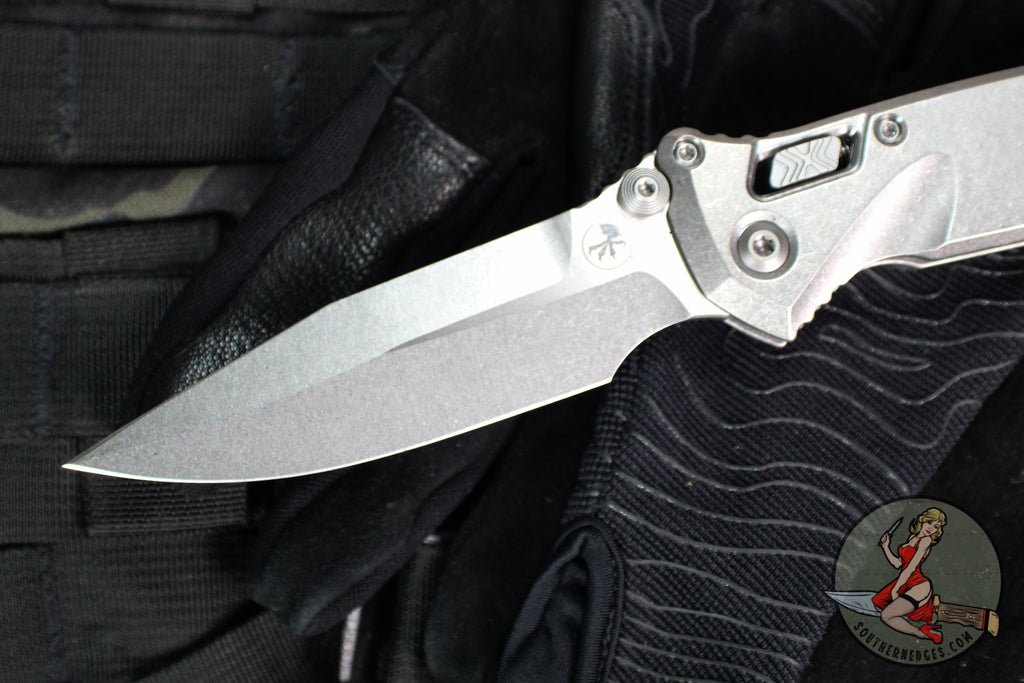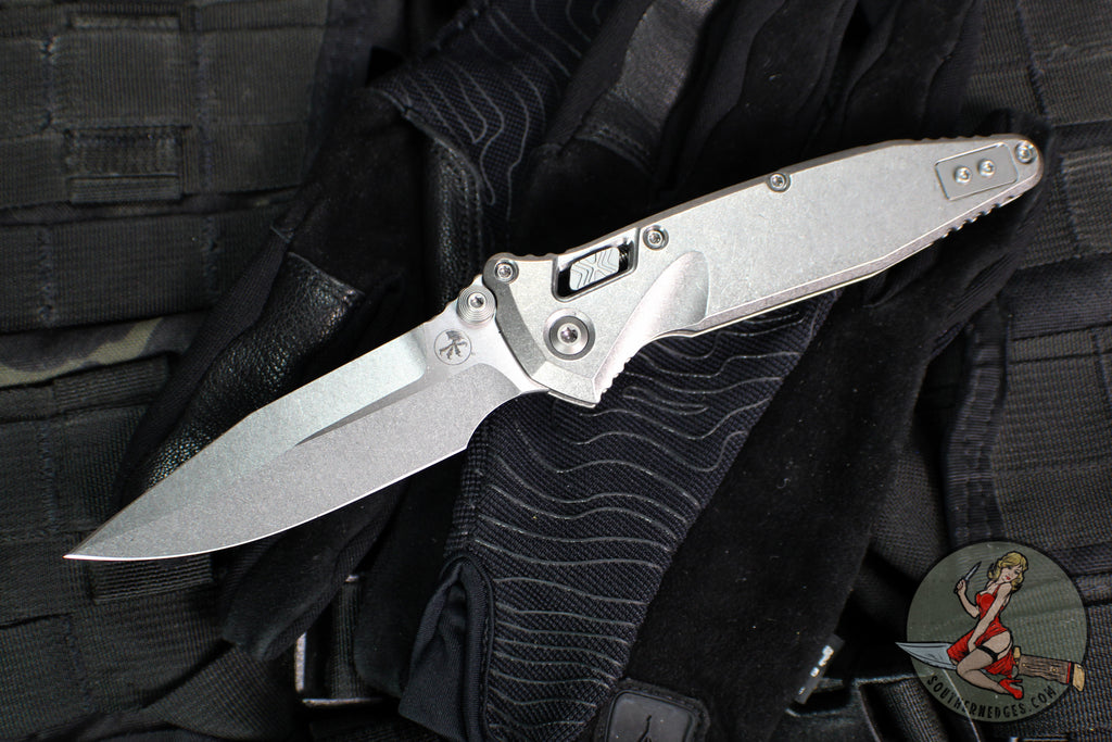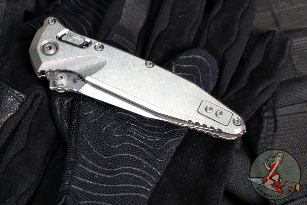 Microtech Socom Elite- Ram-Lok Manual Folder- Single Edge- Marfione Select- Stonewash Finished Smooth Titanium Handle- Stonewash Blade 160RL-10 SMS1