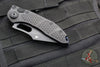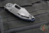 The Microtech Stitch is a production version of the Custom knife collaboration between Marfione and Borka Blades. Black finished M390 steel blade. Black hardware and Blue Titanium backspacer. 3.75" Blade, 8.5" overall. Tip up carry. Side opening blade.