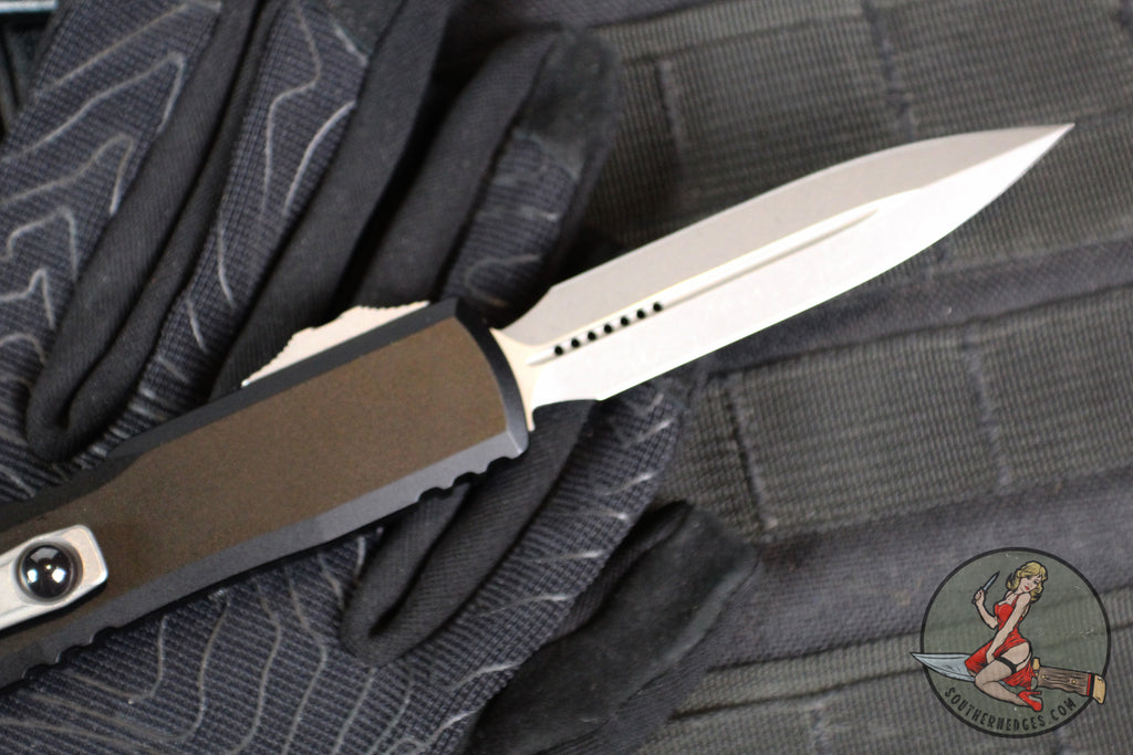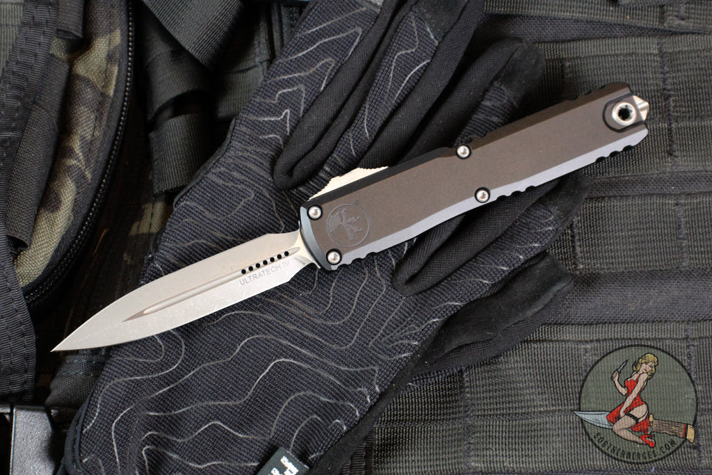 Microtech Ultratech OTF Knife- GEN IV- Double Edge- Black Handle- Apocalyptic Finished Blade 11224-10 AP