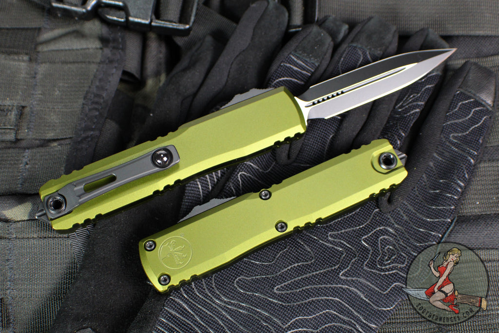 Microtech Ultratech OTF Knife- GEN IV- Double Edge- OD Green Handle- Black Finished Plain Edge Blade 11224-1 OD