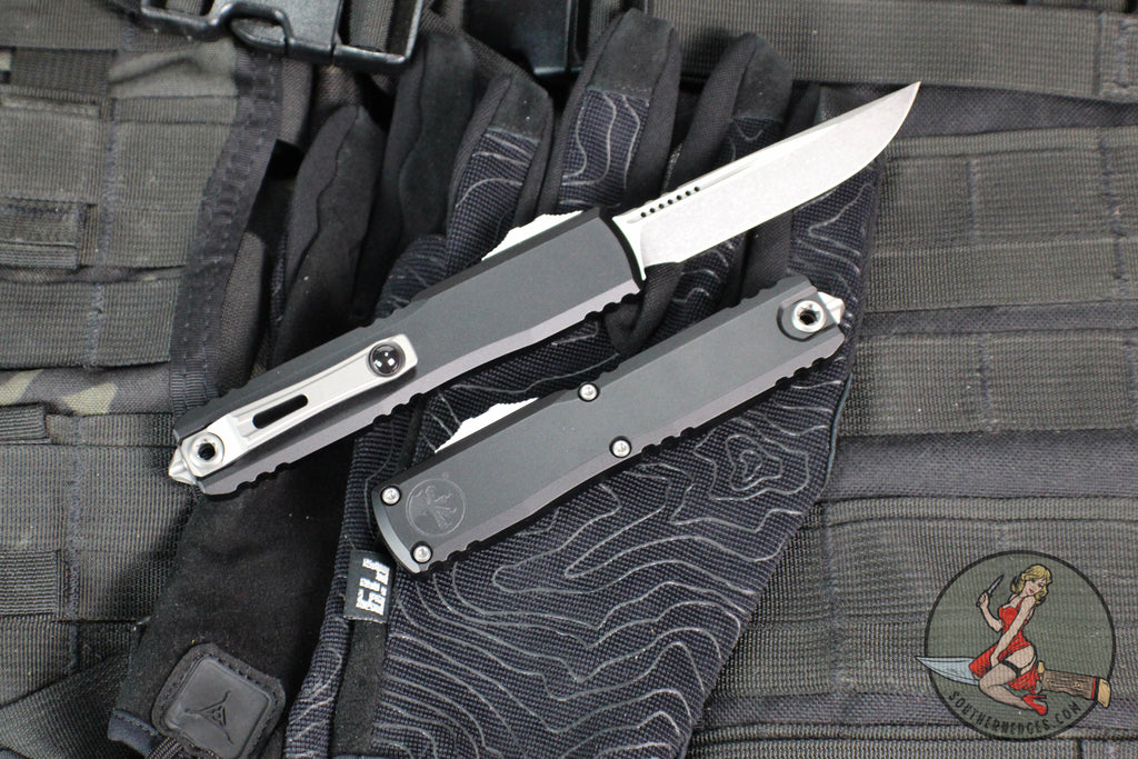 Microtech Ultratech OTF Knife- GEN IV- Single Edge- Black Handle- Stonewash Finished Blade 11214-10