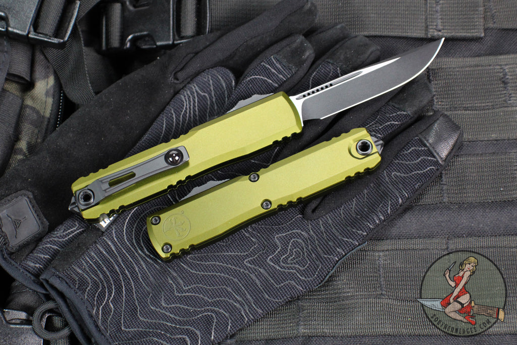 Microtech Ultratech OTF Knife- GEN IV- Single Edge- OD Green Handle- Black Finished Plain Edge Blade 11214-1 OD