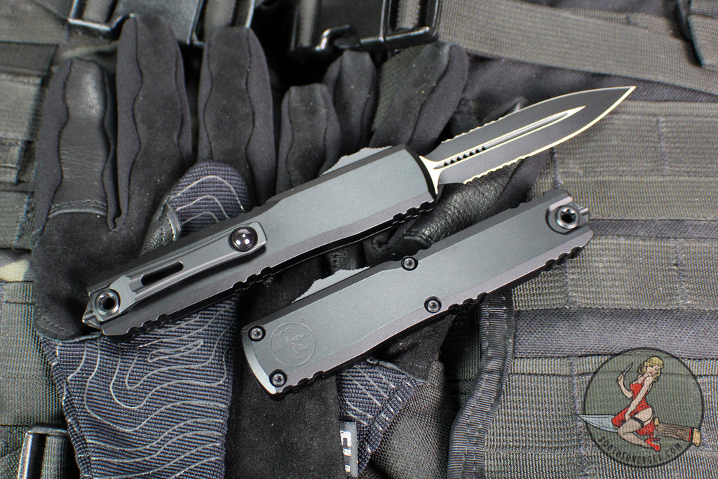 Microtech Ultratech OTF Knife- GEN IV- Tactical- Double Edge- Black Handle- Black Finished Part Serrated Edge Blade 11224-2 T