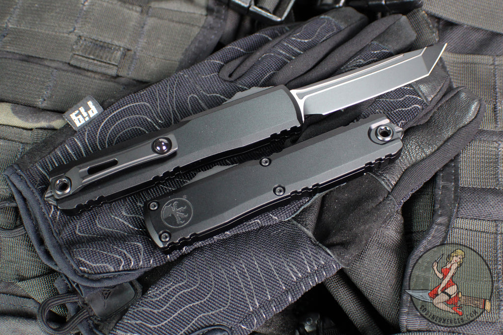 Microtech Ultratech OTF Knife- GEN IV- Tactical- Tanto Edge- Black Handle- Black Finished Plain Edge Blade 11234-1 T