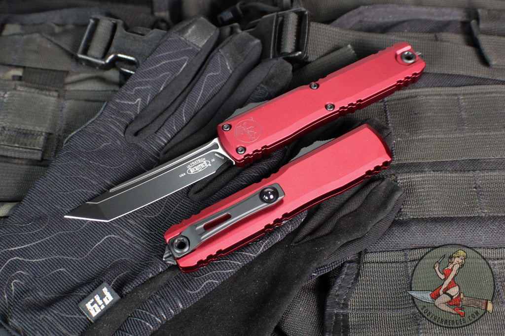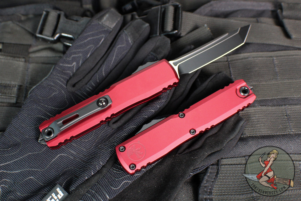 Microtech Ultratech OTF Knife- GEN IV- Tanto Edge- Merlot Red Handle- Black Finished Blade 11234-1 MR