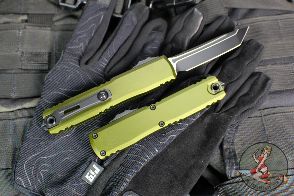 Microtech Ultratech OTF Knife- GEN IV- Tanto Edge- OD Green Handle- Black Finished Blade 11234-1 OD
