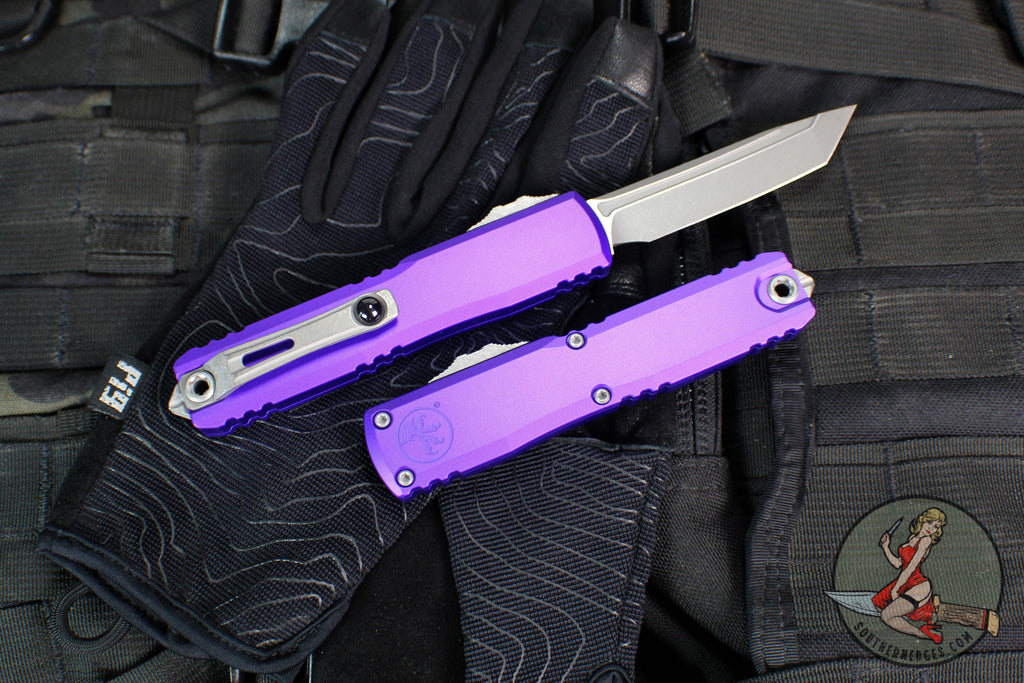 Microtech Ultratech OTF Knife- GEN IV- Tanto Edge- Purple Handle- Apocalyptic Finished Blade 11234-10 APPU