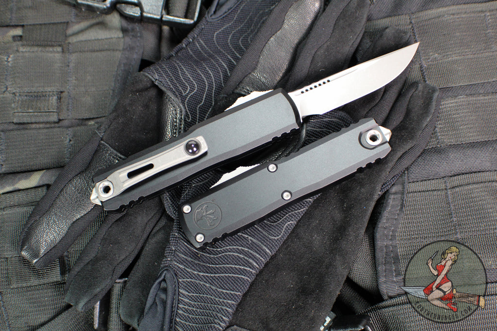 Microtech UTX-85 OTF Knife- GEN IV- Single Edge- Black Handle- Apocalyptic Blade 12314-10 AP