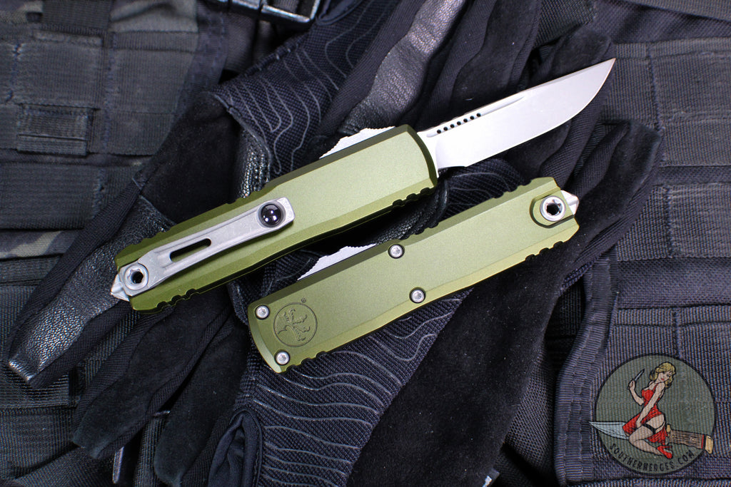 Microtech UTX-85 OTF Knife- GEN IV- Single Edge- OD Green Handle- Apocalyptic Blade 12314-10 APOD