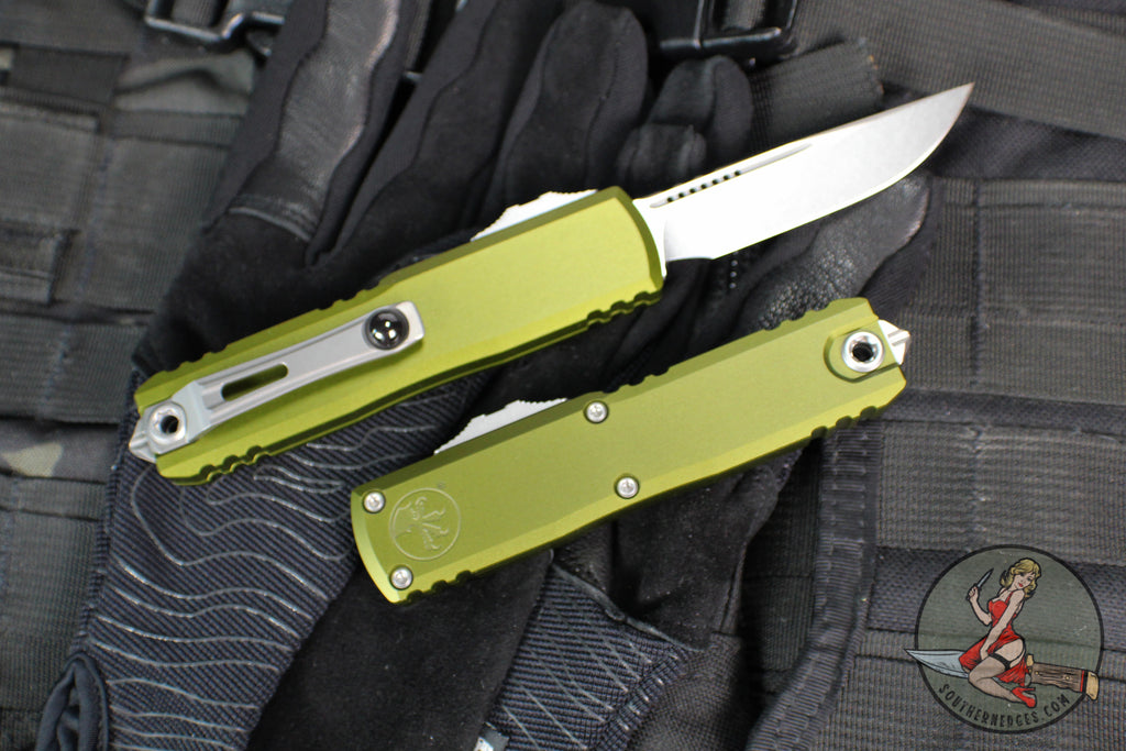 Microtech UTX-85 OTF Knife- GEN IV- Single Edge- OD Green Handle- Stonewash Blade 12314-10 OD