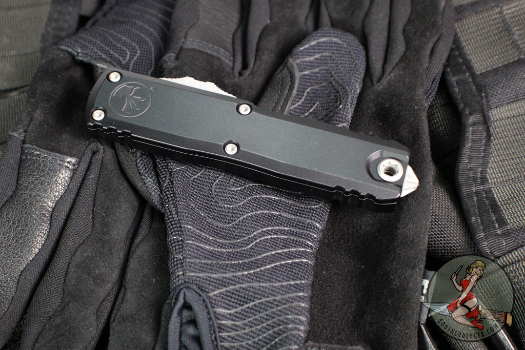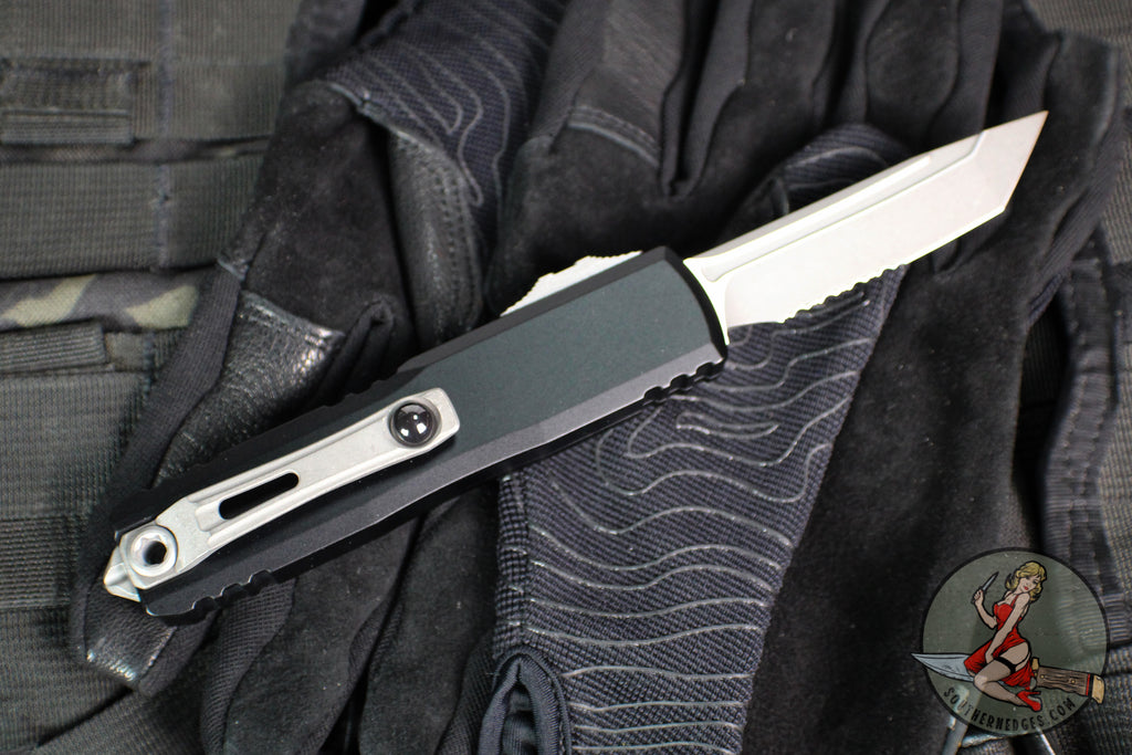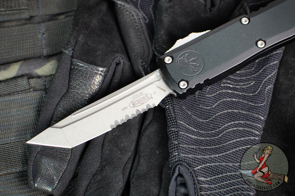Microtech UTX-85 OTF Knife- GEN IV- Tanto Edge- Black Handle- Apocalyptic Part Serrated Blade 12334-11 AP