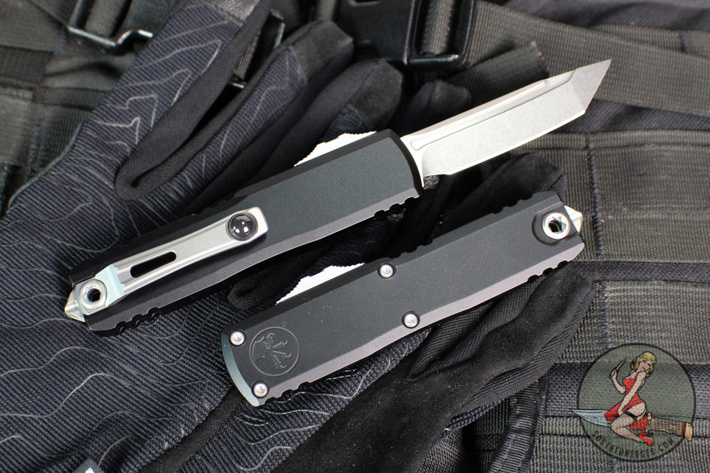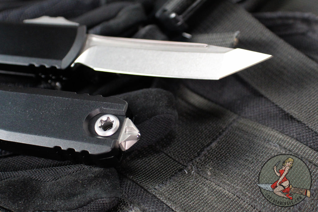Microtech UTX-85 OTF Knife- GEN IV- Tanto Edge- Black Handle- Stonewash Finished Blade 12334-10