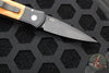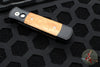 Protech Godson Out The Side Auto (OTS). Black Handle with fantastic Red Ironbark Eucalyptus Wood Inlay. Black Plain Edge Blade. 6061-T6 Aluminum Handle and 154-CM Blade Steel.
