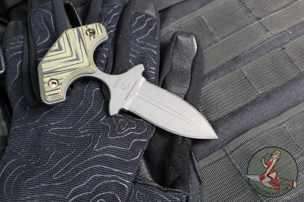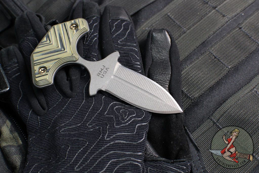 RMJ Tactical BUB- Back Up Push Dagger- Double Edge- Tungsten Finish Magnacut Steel- Dirty Olive G-10