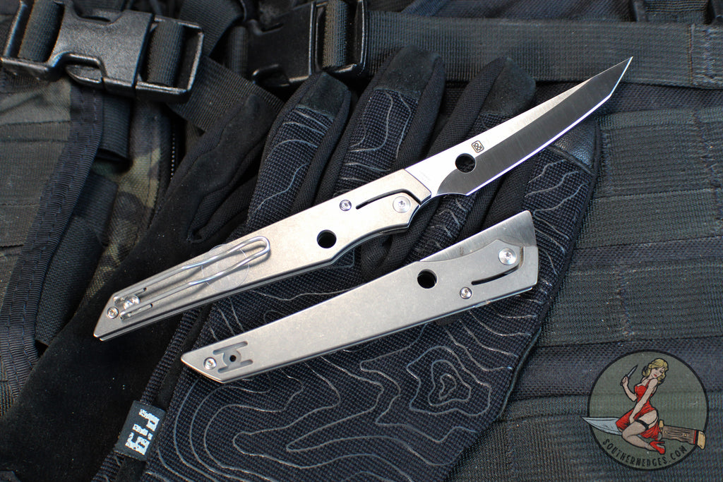 Spyderco Cobol Slipjoint folding/Flipper knife. Titanium handle and Satin blade in M398 steel. Made in Italy.