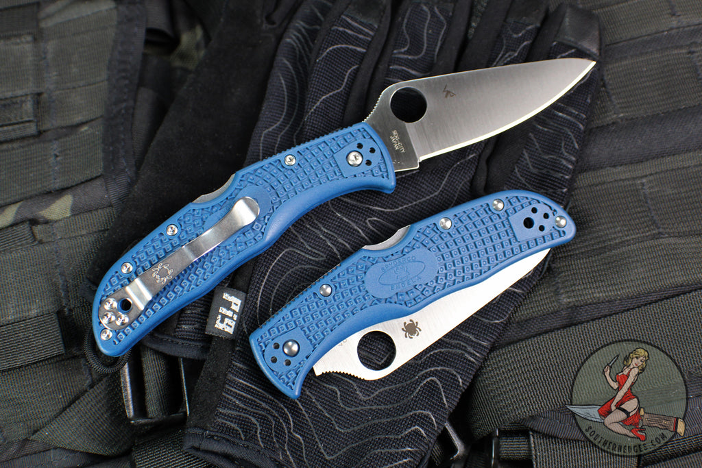 Spyderco Endela Lockback Folder- Cobalt Blue FRN Handle- Satin Flat Ground SPY27 Steel Blade C243PCBL