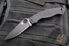Spyderco Military Modified Clip Point Style Folding Knife. Flat ground black blade from CPM-S30V steel and black G-10 handles. New compression knife made in Golden, Co. Has standard Spyderco thumbhole. Reversable pocket clip