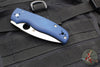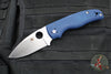 Spyderco Shaman with Cobalt Blue G-10 handled Knife. Larger Native 5 based knife. Saber ground satin SPY27 steel plain edge blade and compression lock system. Made in Golden, Co.
